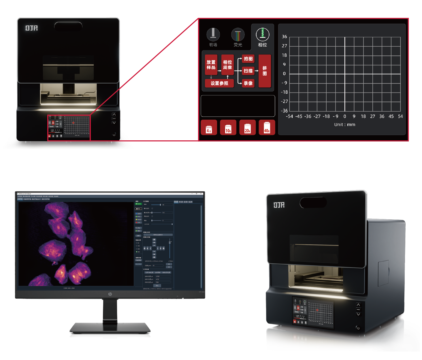 - 支持一键切换成像通道、物镜
